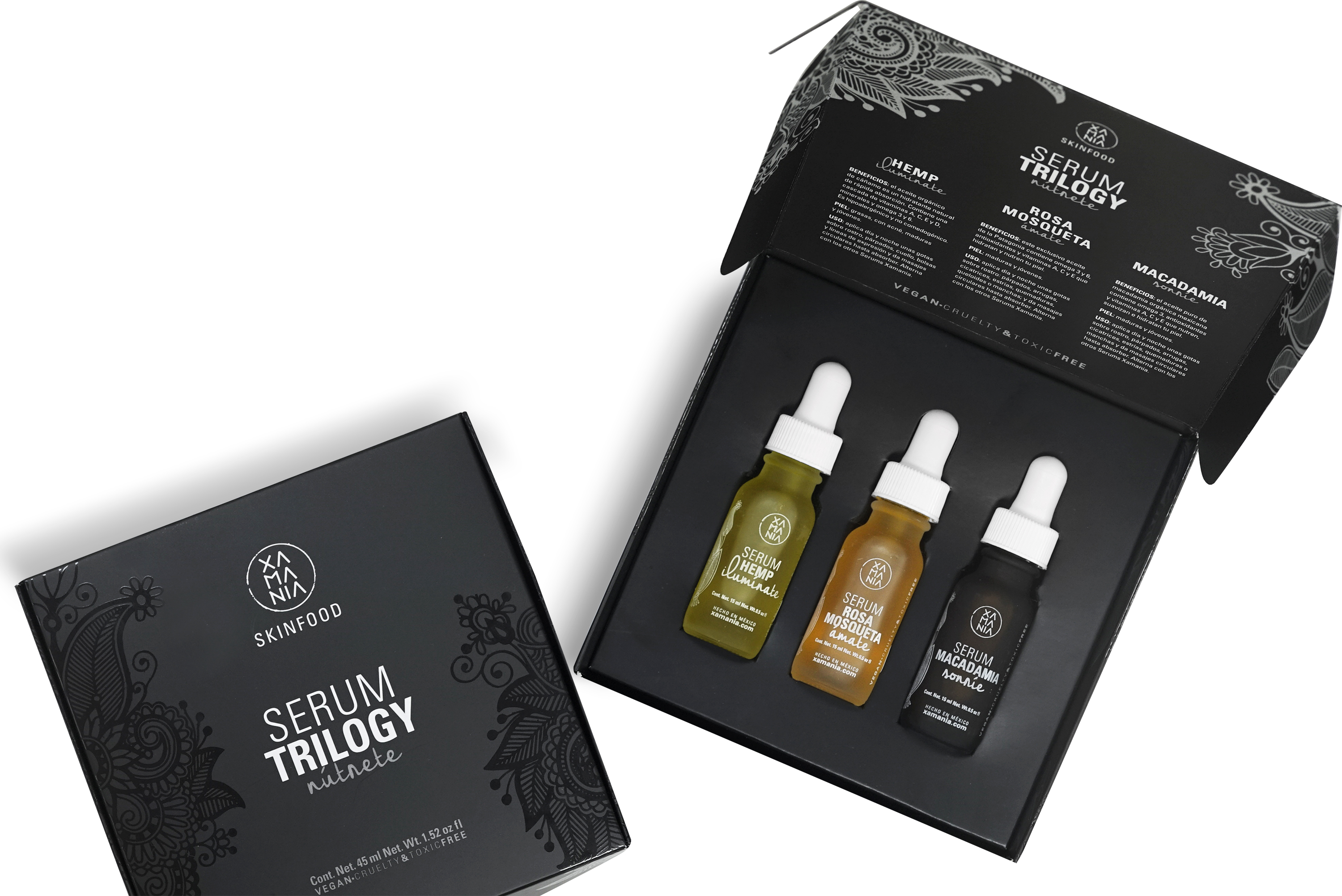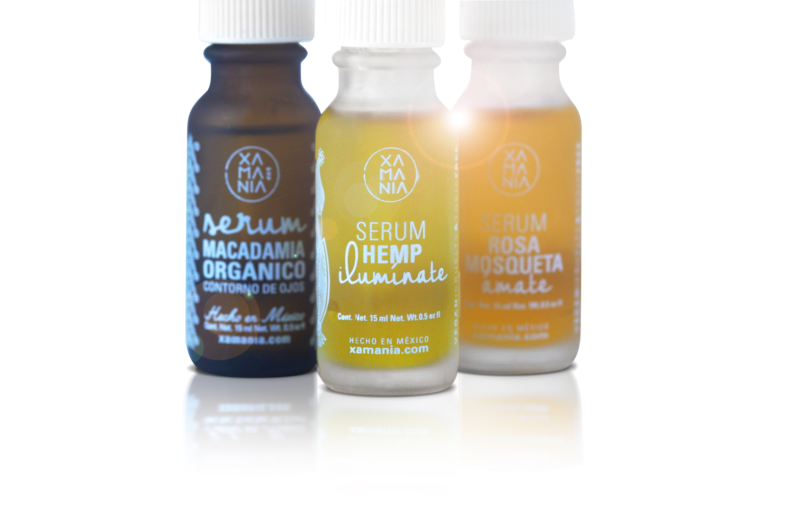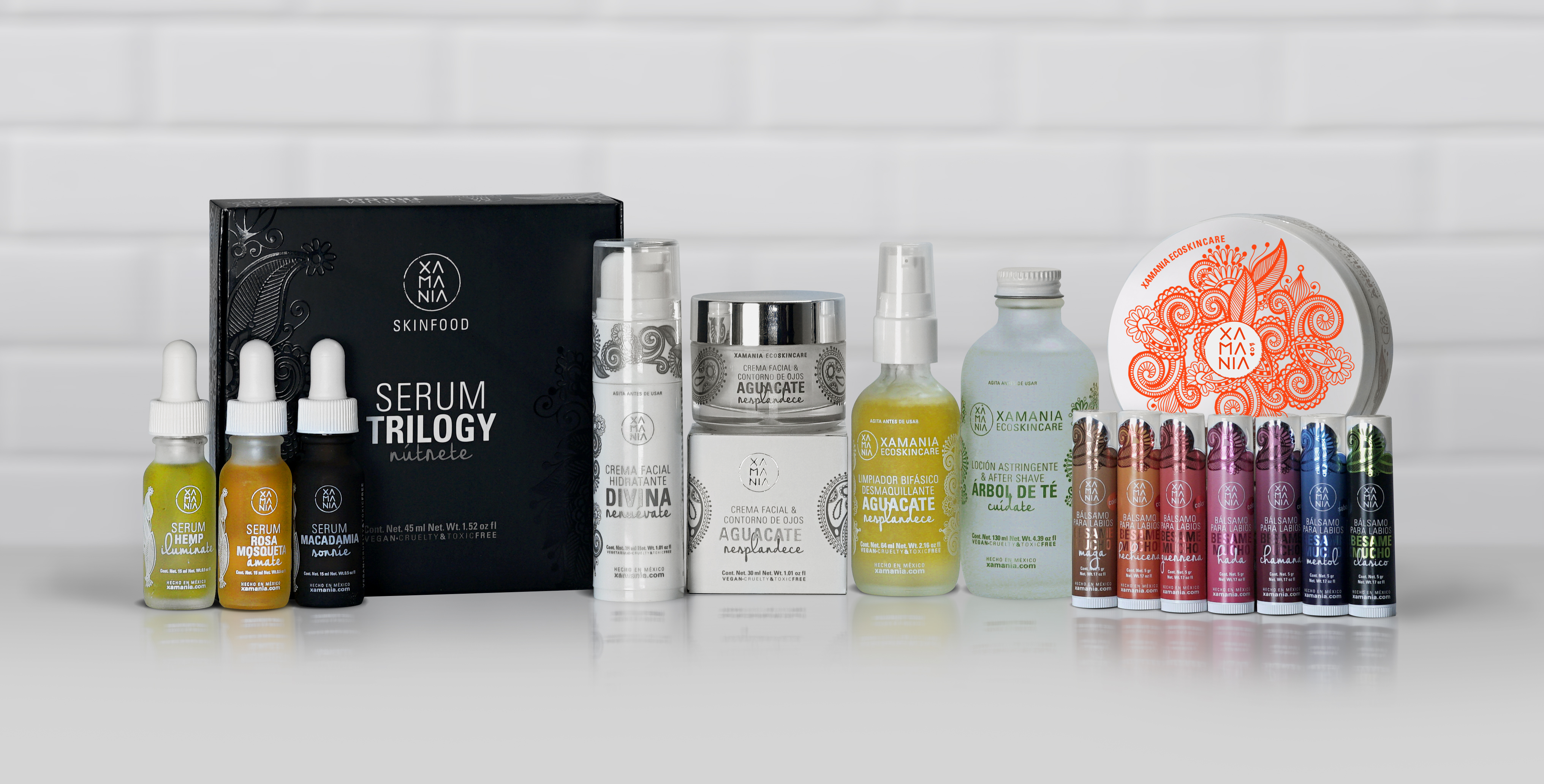 Xamania maneja una línea muy completa de productos premium para el cuidado facial (cremas, serums, desmaquillante, bálsamos labiales, arcillas, etc.), y una línea para cuidado corporal y capilar extensa. Estamos en proceso de la creación de la línea make-up Xamania que manejará un concepto similar utilizando materias primas naturales y colores minerales de la tierra (óxidos).