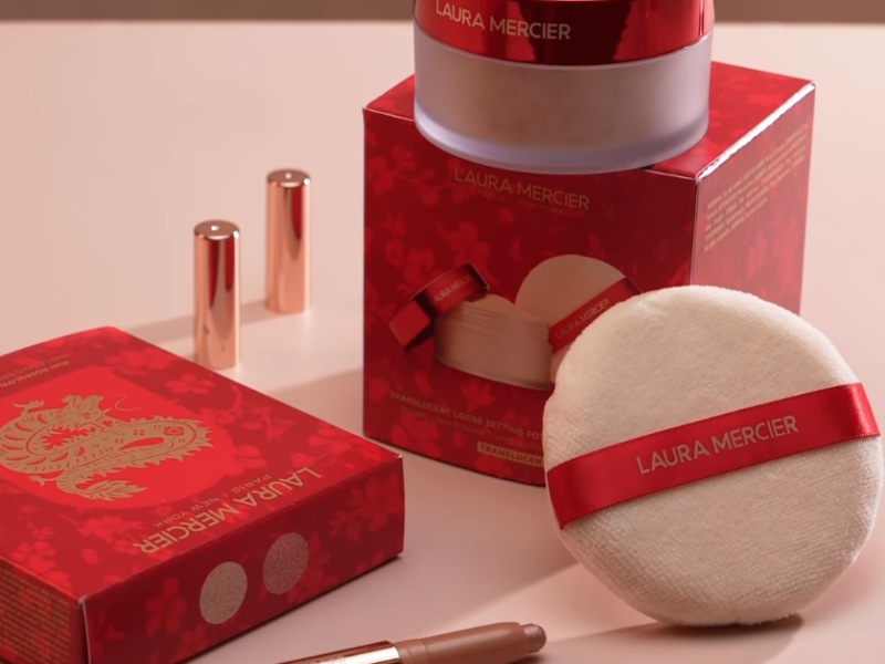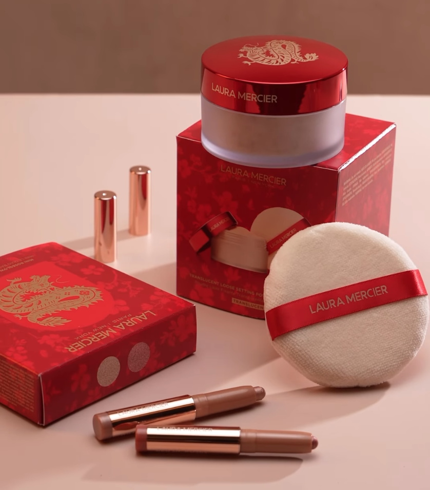 Laura Mercier “Glow with luck“: Laura Mercier lanza maquillaje para un “año impecable del dragón”. La colección presenta polvo translúcido suelto en edición limitada, el set de sombras en barra Velour Puff Set y el rubor Color Infusion.