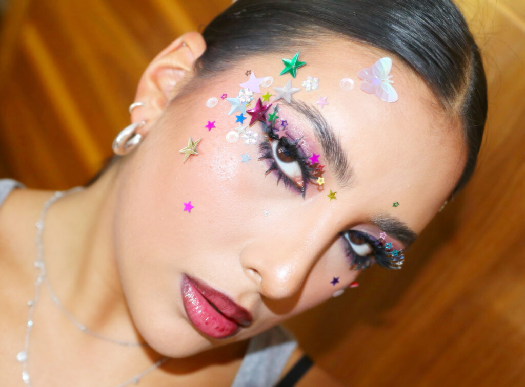 Fairy Diva: Brilla como nunca antes con glitter y piedritas. Este look súper sencillo resalta por el extra brillo, en el cual puedes agregar tanto como gustes. Cuando se trata de brillos, nunca es suficiente, y más es mega más.