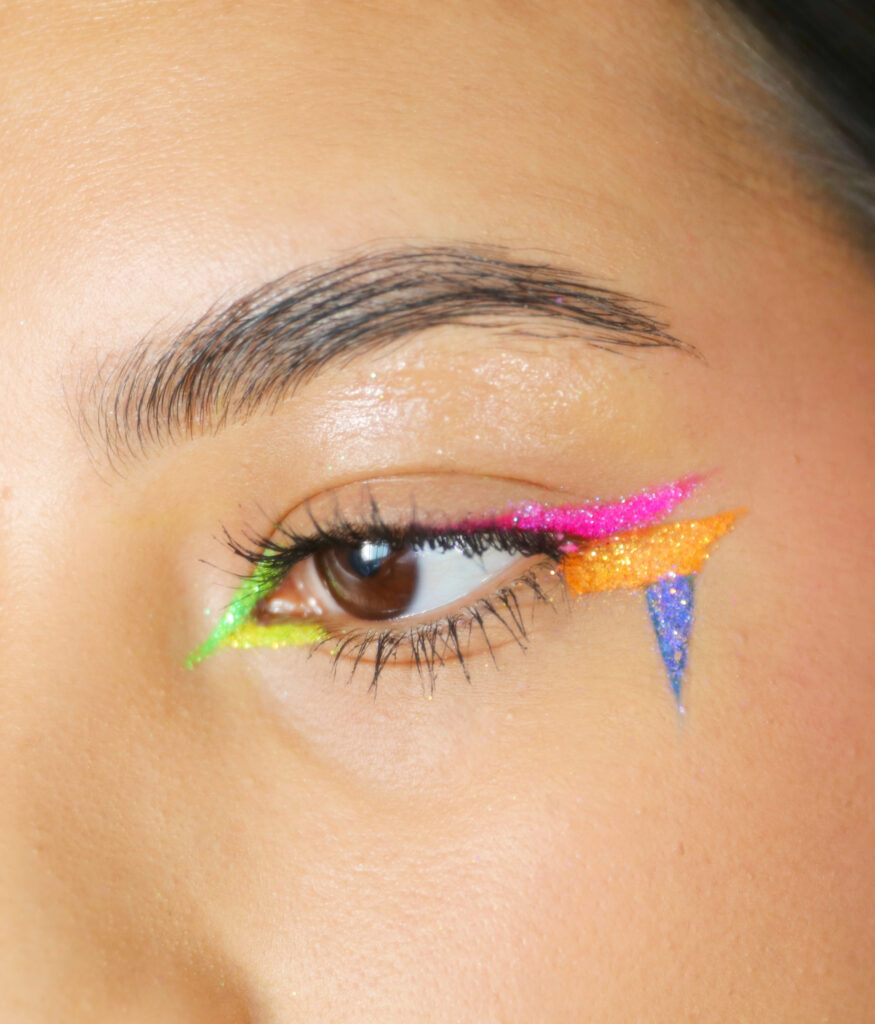 Glitter Bolt: Un homenaje vibrante y sparkly a los colores de tu bandera. Puedes experimentar con diferentes formas en tu delineado gráfico.