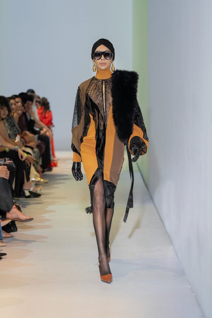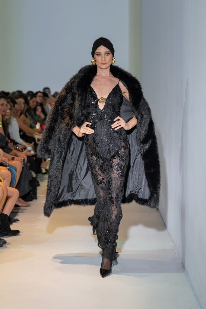La propuesta Otoño-invierno del diseñador tapatío, denota una gran construcción en siluetas que retoman los elementos clásicos del imaginario ochentero como las hombreras, estructuras tajantes, textiles lujosos y transparencias seductoras.