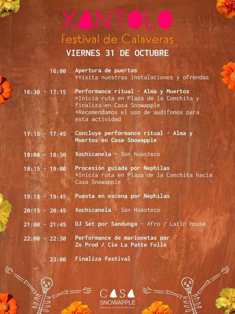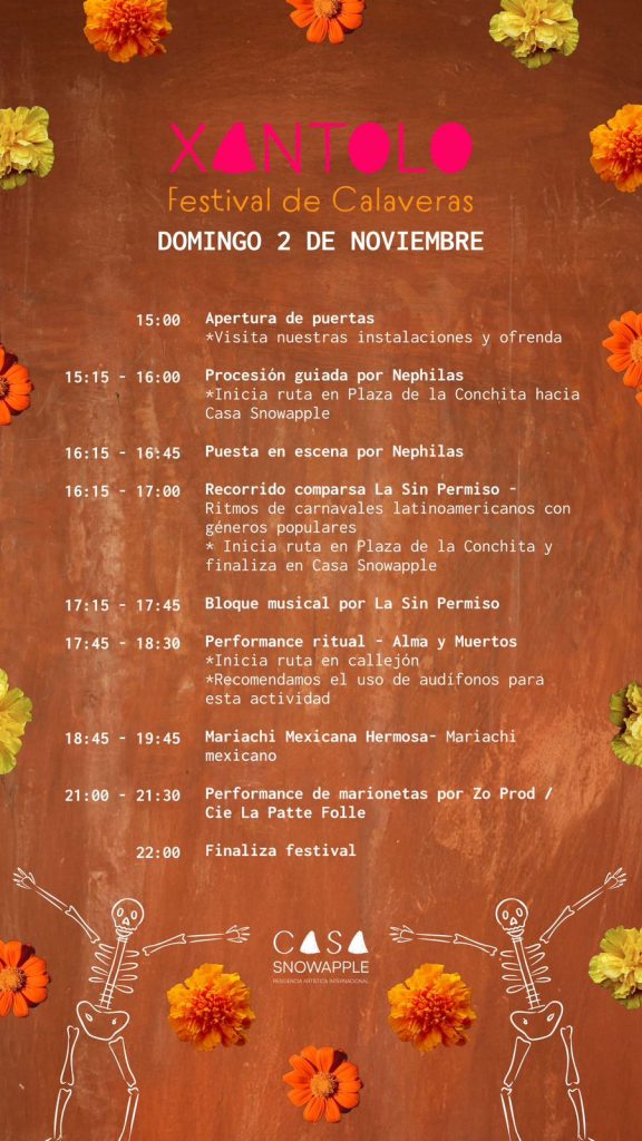 Organizado por el colectivo internacional Snowapple en colaboración con Casa Snowapple, Xantolo se erige como una invitación a mirar la vida desde la memoria, a celebrar las transiciones como reencuentros, y a habitar el arte como un acto de comunidad y trascendencia.