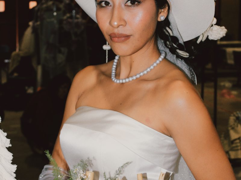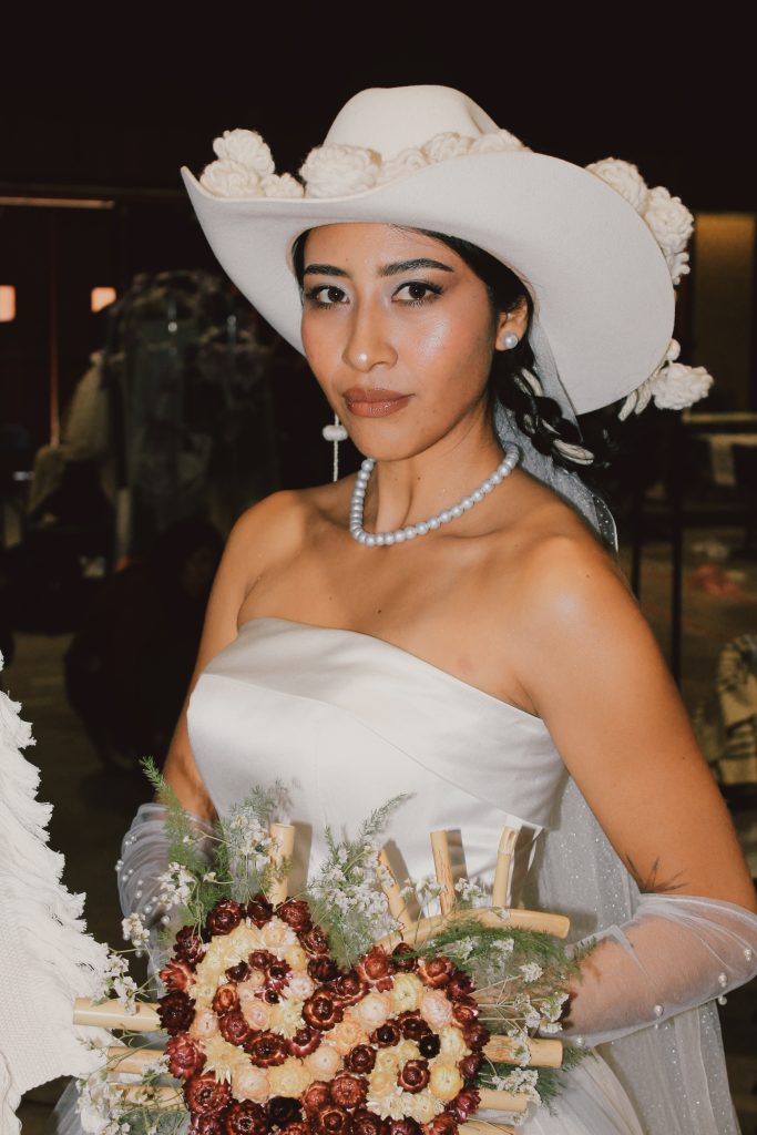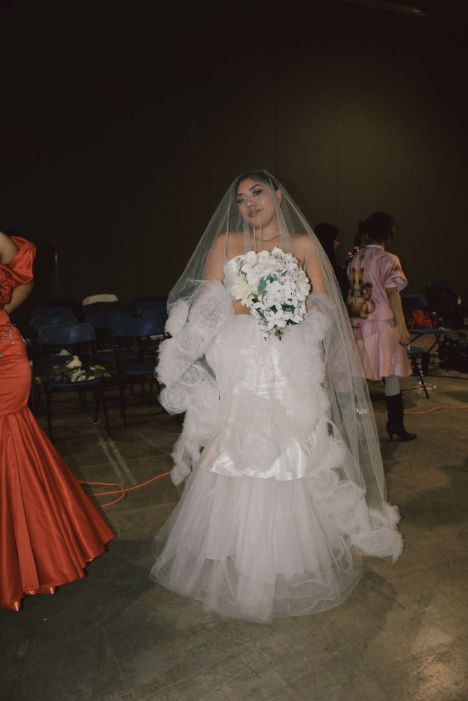 La pasarela ECOS cambió la atmósfera del recinto con una estética rica que sacudió al público. Nayeli M usó el canibalismo simbólico como metáfora del amor total, un concepto audaz envuelto en una estética cake. Carla C apostó por un barroco glamuroso y nostálgico de los 50; Paco L exploró la transformación personal; Vilma apostó por un vestido de novia con un velo floral que celebraba los sueños hechos diseño. ECOS fue emoción, dramatismo y devoción.