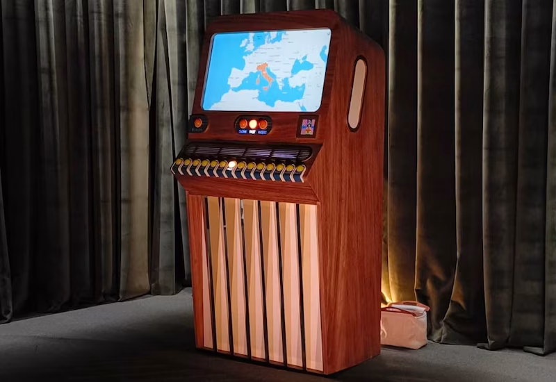 Y la idea detrás de Le Jukebox es justamente esa: compartir una experiencia musical, pero en el mundo físico. Cualquiera puede enviarnos música a la radio. Si tienes una canción que amas y quieres que esté en la app, puedes enviárnosla. Después nosotros la seleccionamos y listo, mucha de la música en la app viene de personas que quieren compartir su cultura y su conocimiento. Así que llevamos esa experiencia de compartir al mundo físico, que la gente se reúna alrededor de este objeto y descubra música juntos. Se trata de crear comunidad en el mundo real una vez más, de reunirse alrededor de la música y de este objeto.