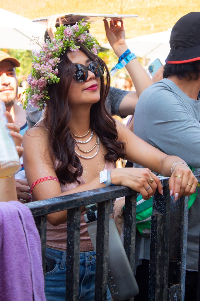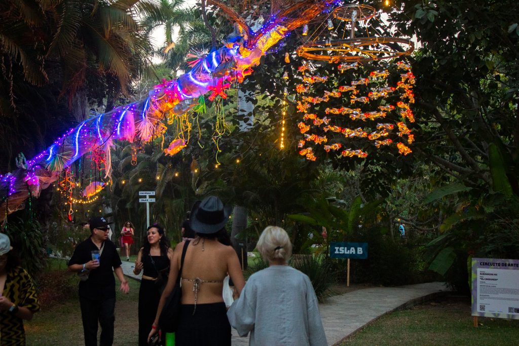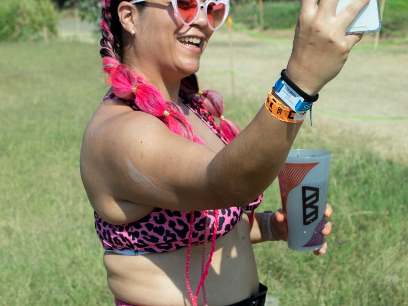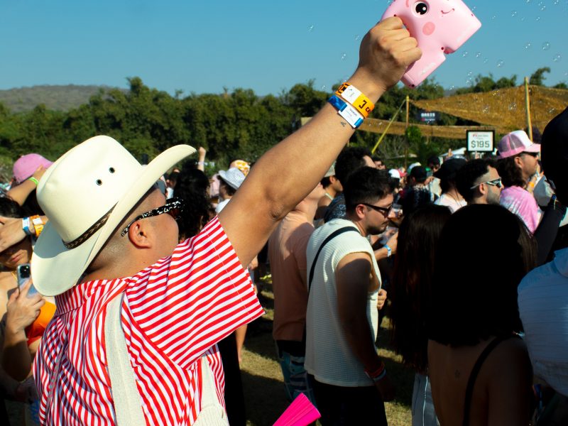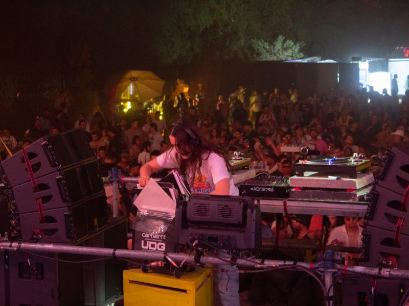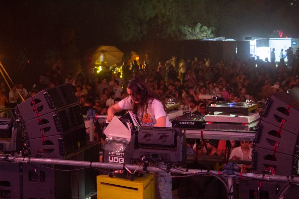 Tras un par de vueltas para encontrar nuestro glamping e instalarnos, nos encontramos con Eduardo, fotógrafo que en esta ocasión colaboró con MEOW para registrar la experiencia Bahidorá. Edu nos condujo hasta La Madriguera, un escenario escondido entre maizales, donde nos recibió DJ Samia y su impresionante energía musical que parecía recorrer el mundo, hilando sonidos de Norte a Sur, de Este a Oeste, con el reguetón como brújula.