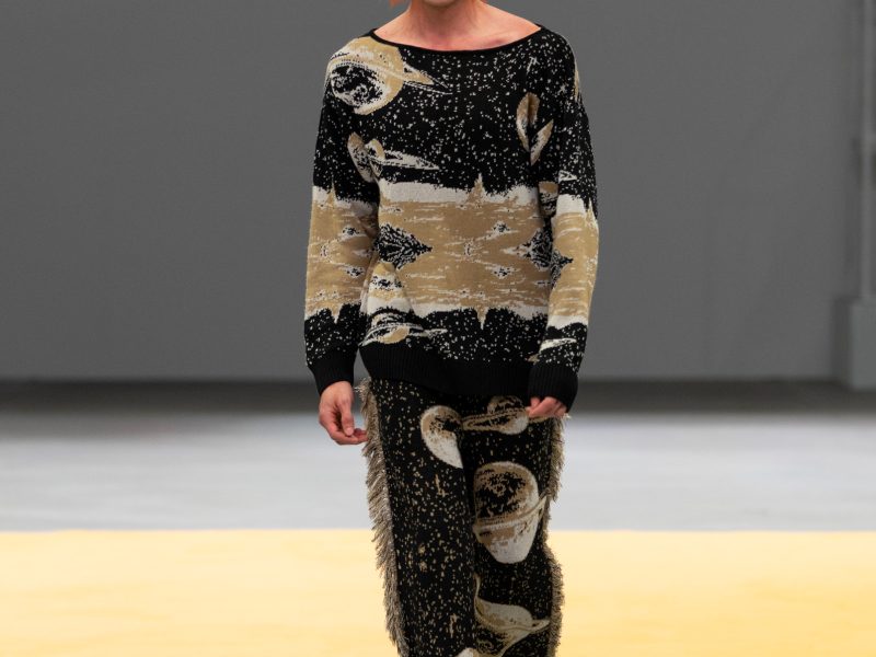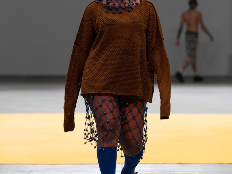 Stardust, inspirada en el cosmos, llevó brillo y fantasía a la pasarela. La colección conserva los tejidos de punto característicos de la firma e incorporando textiles más ligeros que amplían su universo creativo. Un maquillaje desprolijo por M.A.C. Cosmetics y el hairstyling de aire grunge a cargo de Ek Hair; un casting diverso y un cierre que se sintió como una fiesta dieron forma a una narrativa coherente y auténtica: una voz urbana que desafía las tendencias desde su propio lenguaje.